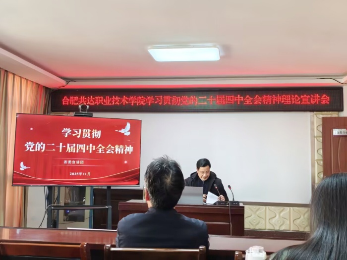 2025年11月28日下午,合肥共达职业技术学院隆重举办“学习贯彻党的二十届四中全会精神理论宣讲会”,特邀安徽农业大学人文学院院长孙超教授作专题讲座。电气工程系全体辅导员积极响应学校号召,全程参与本次宣讲学习,旨在深化思想认识、凝聚育人共识,推动全会精神在系部育人工作中落地生根。