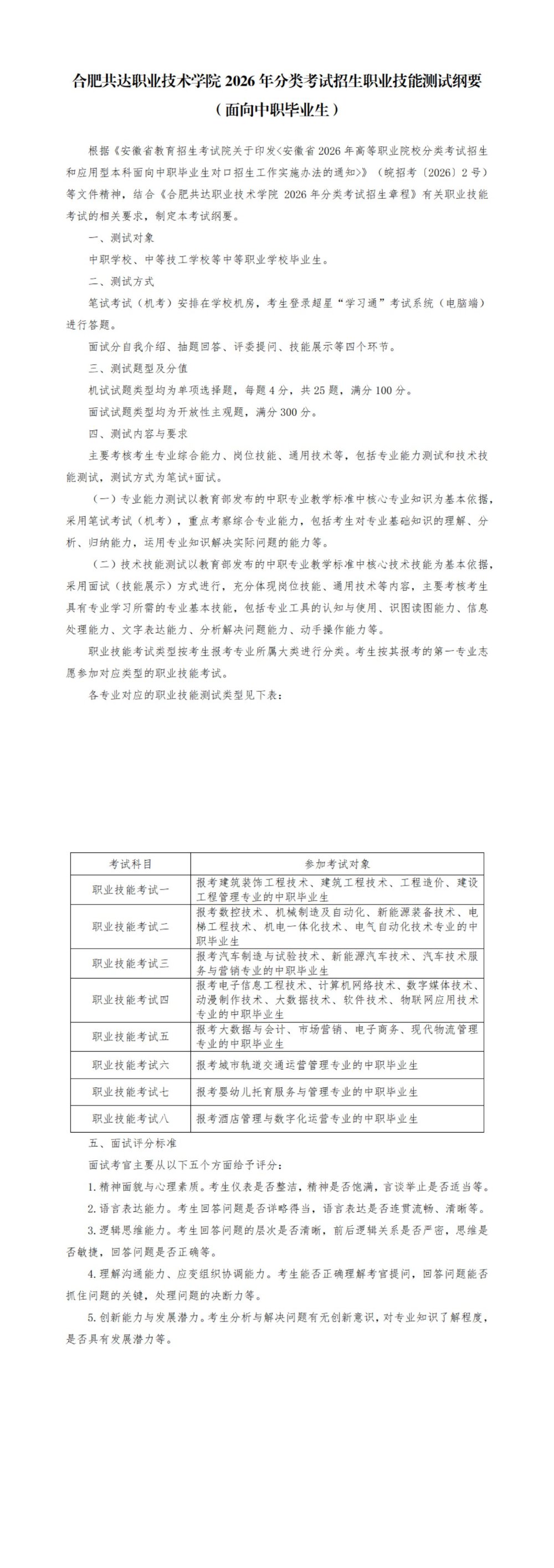 2026年分类考试招生职业技能测试纲要