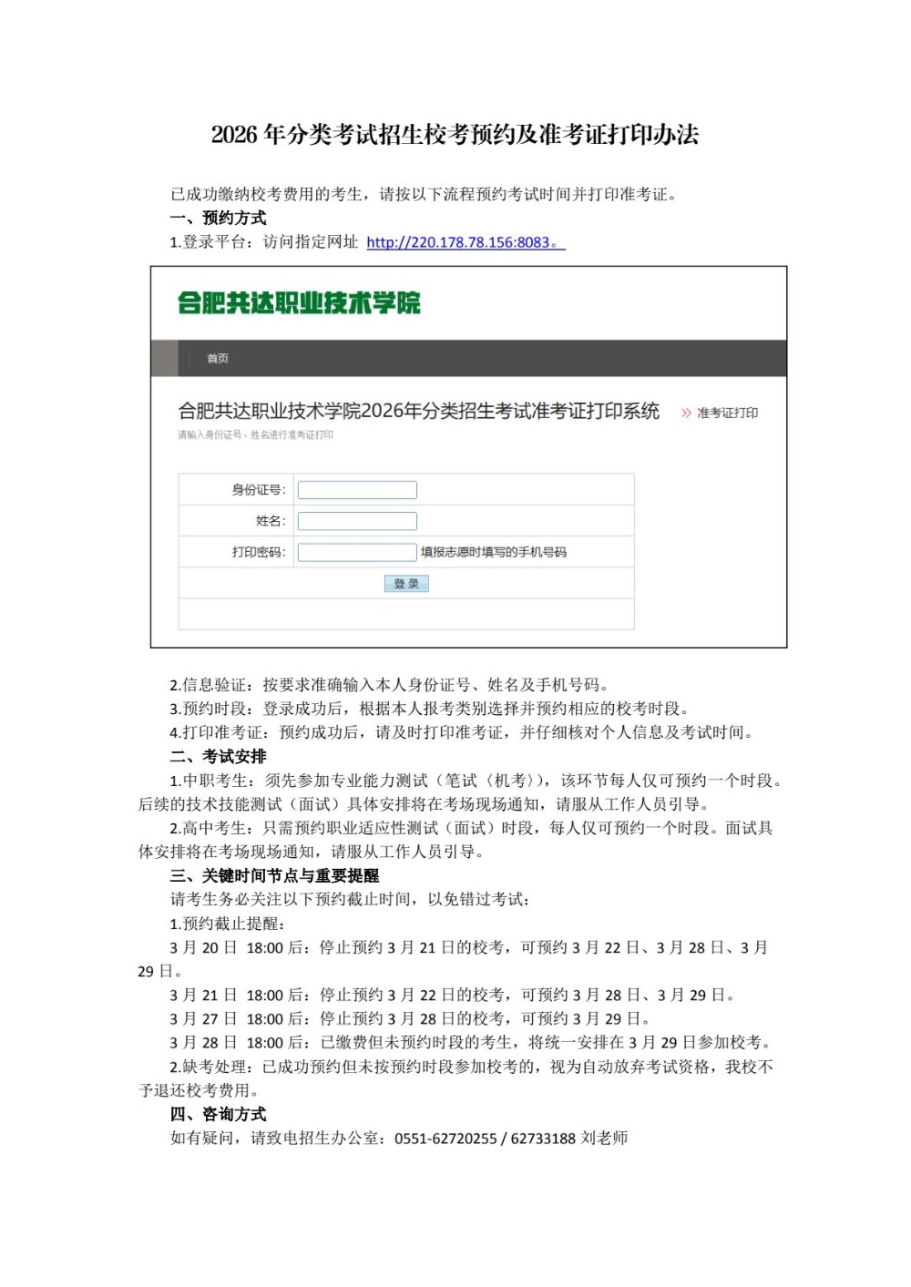 2026年分类考试招生校考预约及准考证打印办法