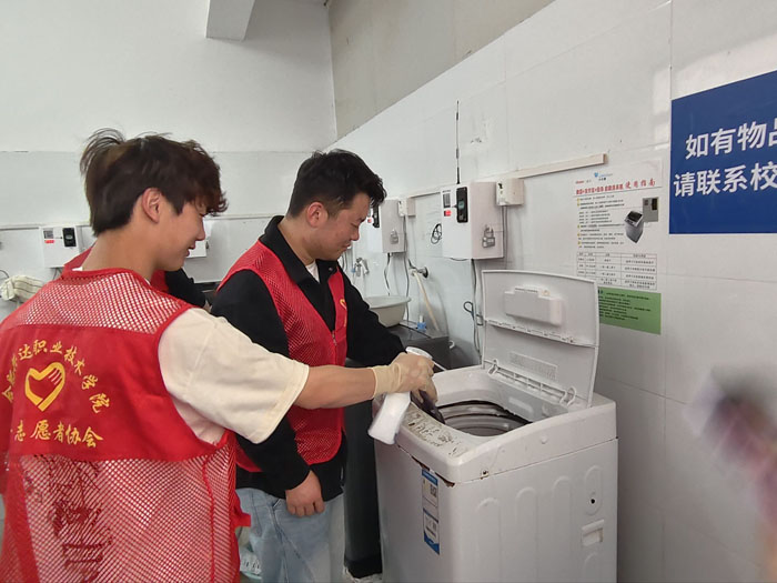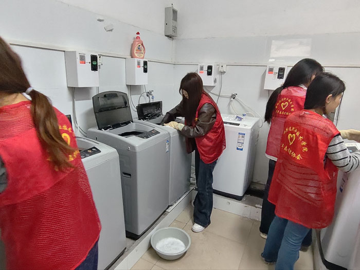 公共洗衣机是学生宿舍的高频共用设备,长期使用容易积垢藏菌。去年以来,校团委将定期清洁公共洗衣机作为一项固定服务项目,坚持每学期多次开展,得到了同学们的广泛认可。本学期,校团委提前谋划,继续沿用“志愿者+专业清洁”模式,组织20余名学生志愿者,分组前往各学生公寓洗衣房,对所有公共洗衣机进行全面清洁消毒。