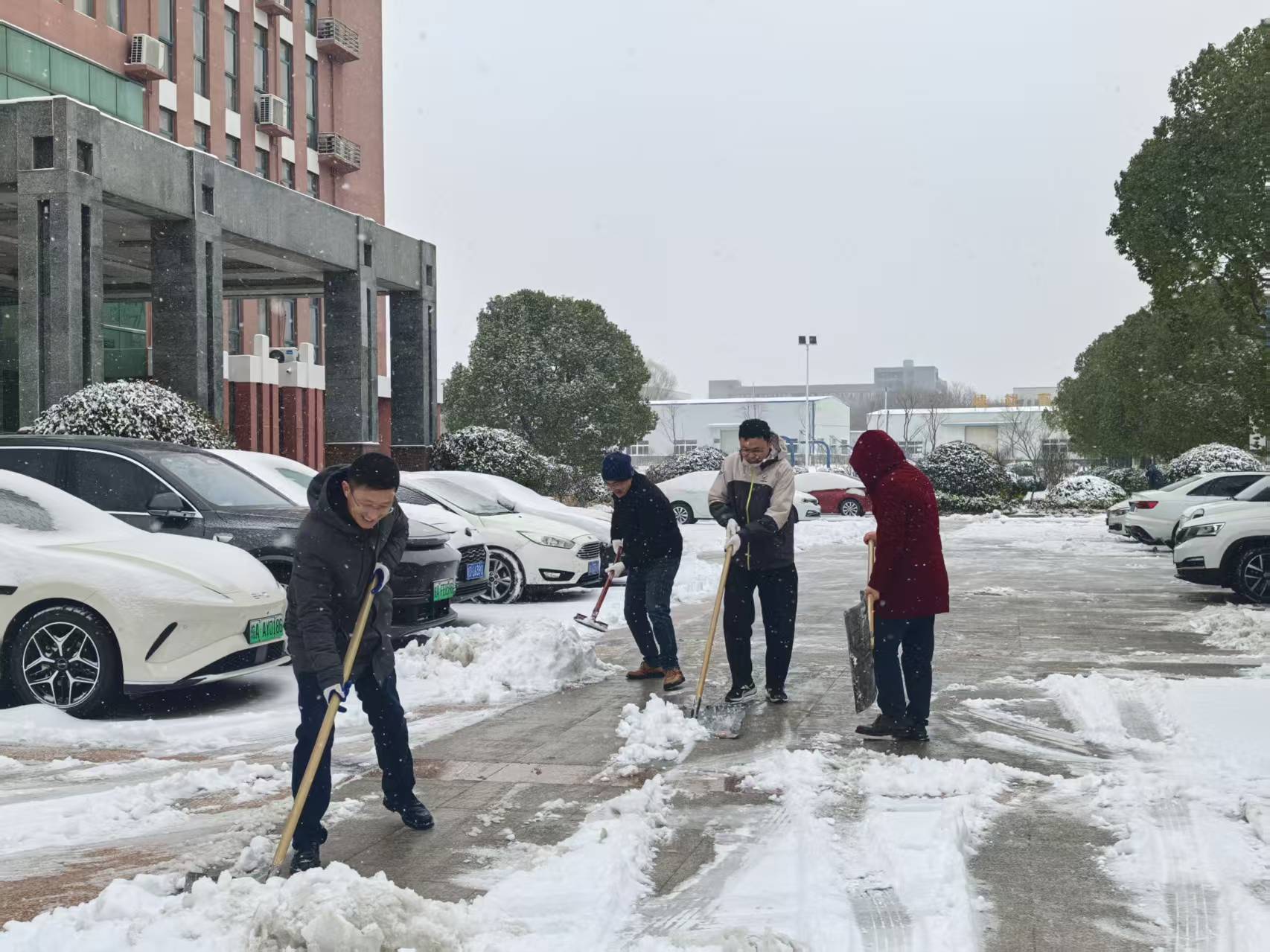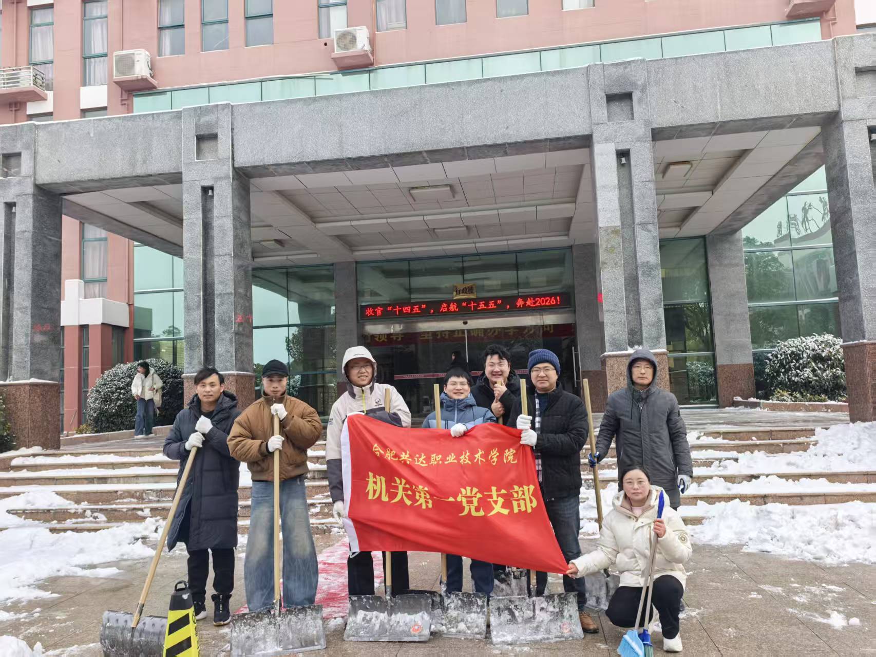 2026年1月20日,合肥迎来强降雪天气,积雪给师生的日常出行带来了不便与安全隐患。为确保校园道路畅通,保障教学及生活秩序正常,我校总务处与机关第一党支部积极响应、主动作为,迅速组织相关部门及党员干部,于当日上午联合开展了一场校园扫雪除冰活动。