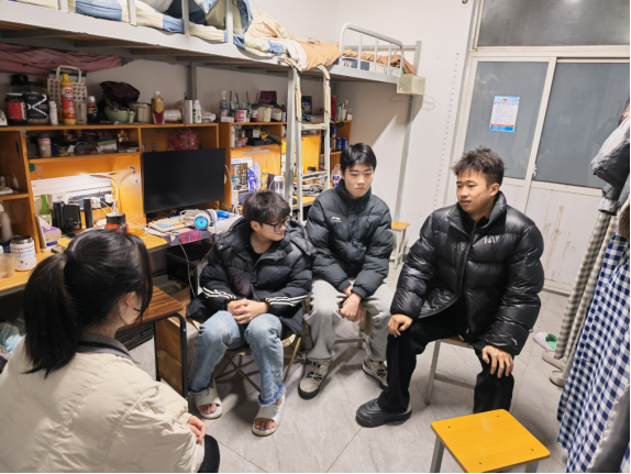 走访过程中,辅导员们紧扣文件要求,灵活采取宿舍走访、大学生社区会议室集中交流等方式,围绕学生学业进展、生活适应、心理状态、职业规划及实际困难等方面展开交流,既“问冷暖”,也“解心结”。在宿舍里,有的辅导员俯身倾听,润物无声;在谈话室中,有的辅导员循循善诱,帮助学生厘清困惑、校准方向。通过“一步一关怀”的持续跟进,把问题发现于萌芽,把压力化解在初始。