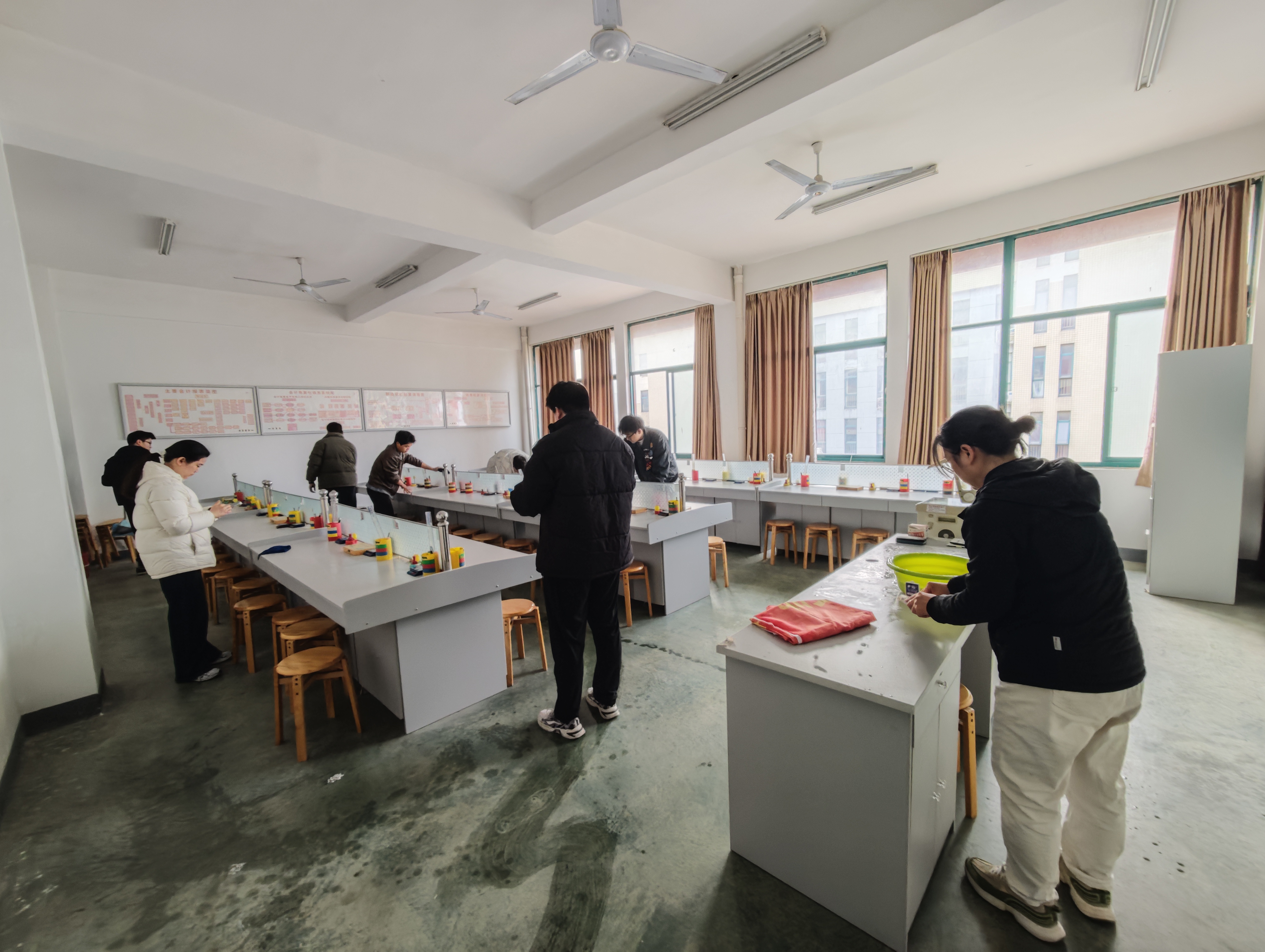 活动当天,在党支部书记余芹同志的带领下,同志们携带清洁工具,来到指定实训室。大家分工明确,协同合作,展现出饱满的热情和积极的劳动态度。有的细致擦拭工作台面,确保学生实操操作区域的卫生;有的认真清扫地面,整理桌椅,规整各类教学用具与实训材料;有的对实训室内的教学设备、电源线路进行了安全检查与简单维护;还有的负责清理卫生死角,擦拭门窗玻璃。整个过程中,同志们不怕脏、不怕累,干劲十足,现场秩序井然,氛围热烈。经过近两个小时的辛勤劳动,会计实训室面貌焕然一新,桌椅摆放整齐,设备洁净如新,为师生创造了更加整洁、舒适、安全的实践教学环境。