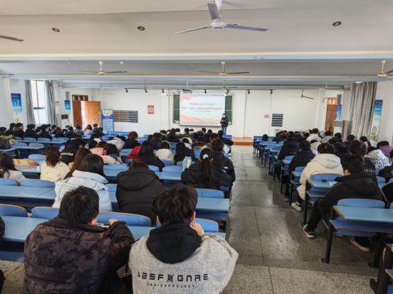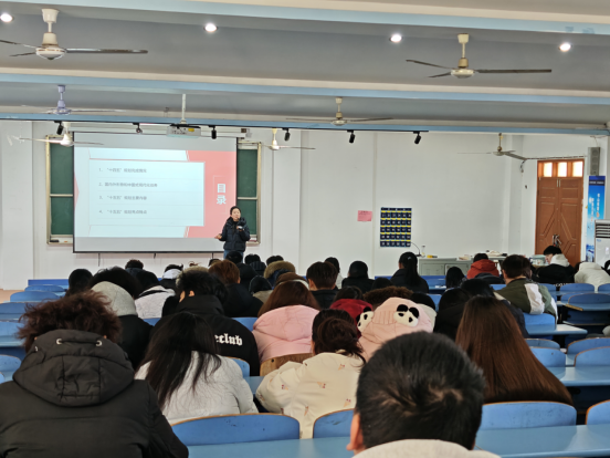 为深入学习贯彻党的二十届四中全会精神,准确把握国家发展大局与战略部署,引导全系师生将思想和行动统一到中央决策部署上来,经济管理系于2026年1月7日下午,在学院阶二教室举行了“举旗帜 送理论”专题宣讲会。本次宣讲会特邀学院理论宣讲团成员汝玲副教授担任主讲。经济管理系全体在校生和辅导员参加了学习。