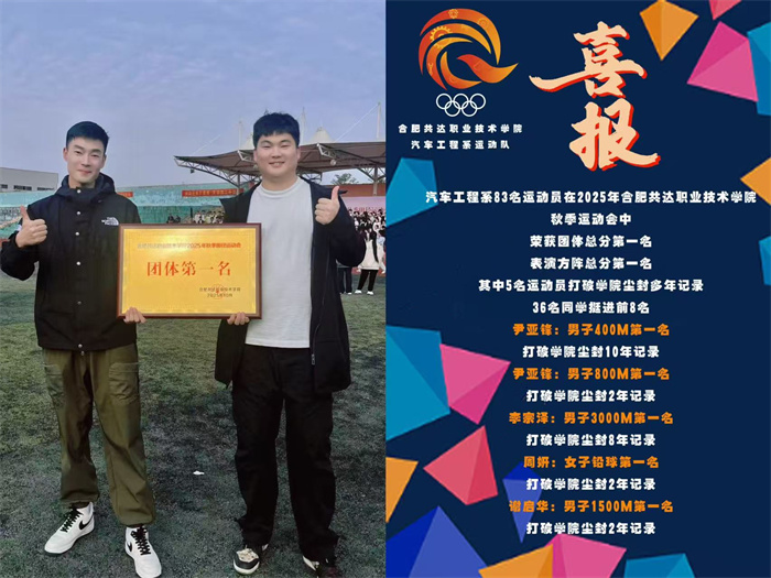 10月31日至11月1日,合肥共达职业技术学院举行了年度秋季运动会,汽车工程系的83名运动员在赛场上奋勇拼搏、顽强奋战,最终以优异的表现荣获团体总分第一名和表演方阵总分第一名的双项荣誉。此次运动会不仅是对运动员们体能和技术的考验,更是对他们坚韧意志力的全面挑战。