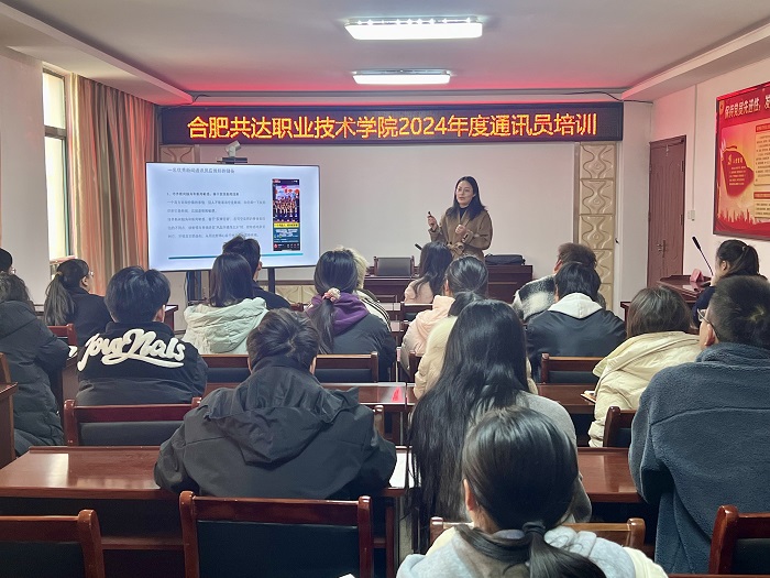 发布时间:2024-12-13 来源:合肥共达职业技术学院12月12日下午,一场别开生面的新闻培训分享会在我院举行。学院特邀合肥日报社资深教育记者谢蕾到校分享,以期提升我校师生新闻写作能力,更好传播校园文化,展现师生风采。