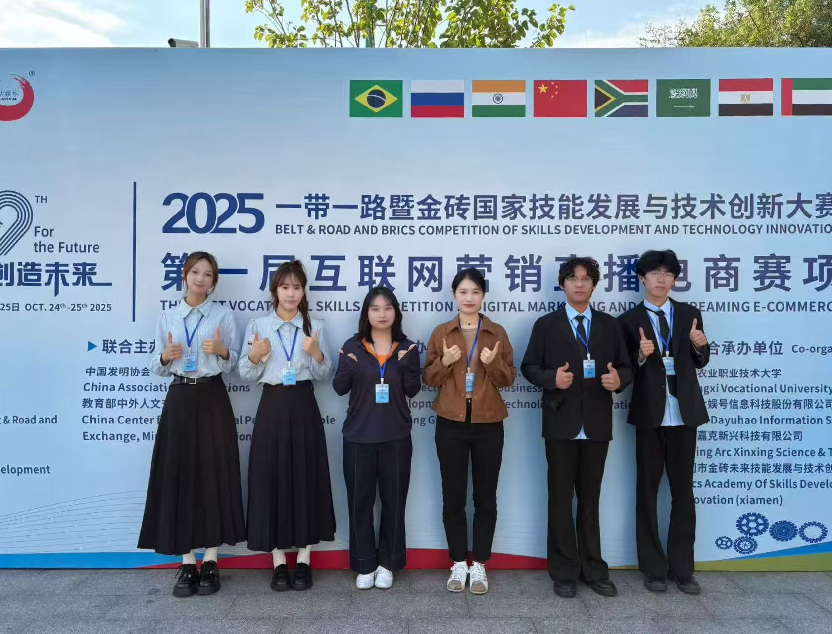 近日,由金砖国家工商理事会、一带一路暨金砖国家技能发展国际联盟等单位联合主办的“2025一带一路暨金砖国家技能发展与技术创新大赛之第一届互联网营销直播电商赛项选拔赛(高职组)”圆满落幕。本次大赛吸引了来自全国各地的323支队伍同台竞技,竞争激烈。