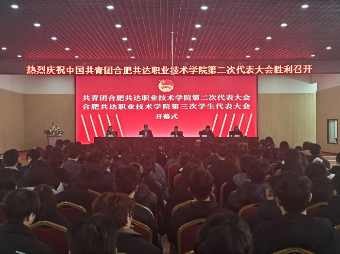 发布时间:2025-12-04 来源:合肥共达职业技术学院12月3日,我校第二次团员代表大会、第三次学生代表大会在大学生活动中心召开。大会系统回顾并总结近年来学校共青团与学生会工作在思想引领、组织建设、社会实践、志愿服务、科技创新、校园文化等方面取得的积极成果与宝贵经验,谋划部署未来五年发展蓝图,并选举产生新一届团学领导集体。督导专员、学院党委书记许绪荣,共青团合肥市委员会副书记李学松,学院党委委员、分管副院长、工会主席张立龙,学院党委委员王惠茹、汝玲等出席会议,兄弟院校团委负责人、市学联代表及全校200余名师生代表共同参会。
