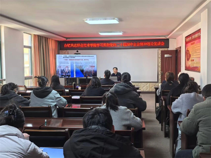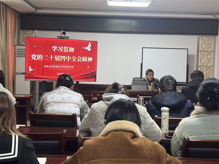 发布时间:2025-12-29 来源:合肥共达职业技术学院党的二十届四中全会召开以来,我校党委高度重视,将学习宣传贯彻全会精神作为当前和今后一个时期首要政治任务,精心谋划、迅速行动,在全校范围内掀起学习热潮。