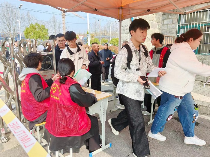 考试当天,校园门口彩虹门高悬,“热烈欢迎来自全国各地的考生”的醒目字样传递着学院的热情与期待。考生按照指引有序进入校园,经过严格的身份验证和准考证核验,踏入各自考场。考场内外,各类指引牌清晰明了,志愿者热情引导,考务人员严谨细致,整个考试过程秩序井然、规范有序。
