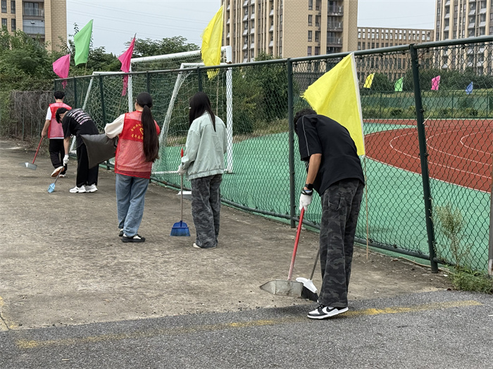 活动前,统一配备白手套、分类垃圾袋等工具,明确划分清扫区域与责任分工。行动中,参与者化身校园 “美容师”,重点清理操场周边绿化带、步道及角落的塑料瓶、废纸、烟头等杂物,党员带头攻坚隐蔽处的积存垃圾,入党积极分子主动跟进配合,形成协作合力。经过近两小时的集中清扫,操场周边环境面貌显著改善,各类垃圾被分类归集后规范投放。